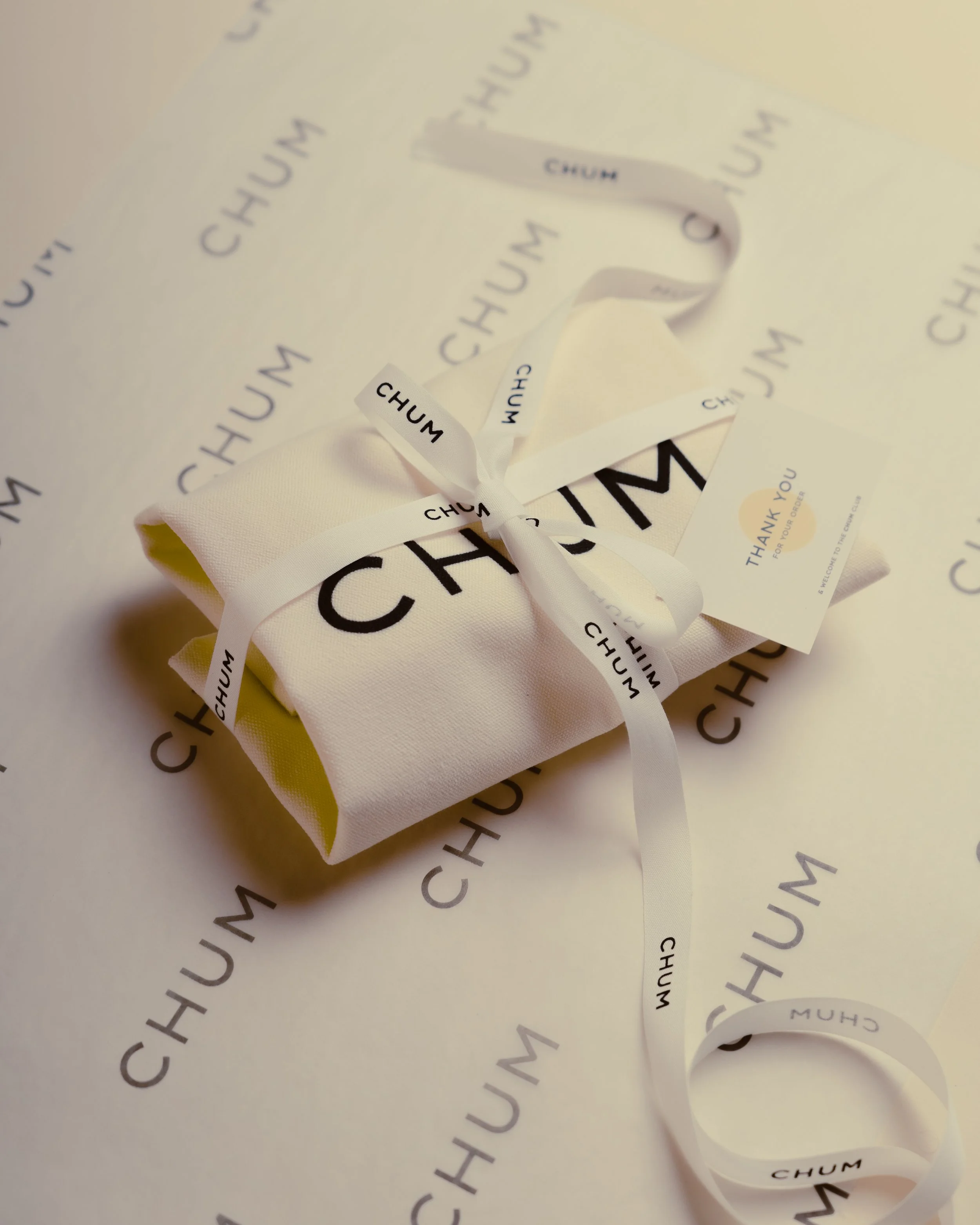 WE BELIEVE IN MINIMISING OUR IMPACT ON THE PLANET. RATHER THAN WASTEFUL PACKAGING, EVERY CHUM ORDER ARRIVES IN CONSIDERED, LOW-WASTE PACKAGING DESIGNED TO BE REUSED AND LOVED.